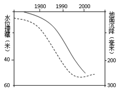 2、单选题 下图是某地地下水位(虚线)和地面沉降(实线)的变化图。据此回答下列各题
