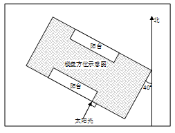 3、单选题 下图显示的是某楼盘的方位和北京时间15点时的太阳光线,该日南面阳台太阳照射的时长为9小时40分,据此回答下列各题。