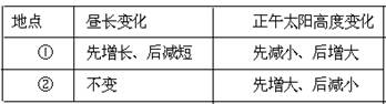 3、单选题 下表所示为6~8月两地昼长和正午太阳高度变化情况,据表回答下题。