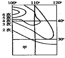 1、单选题 图为我国局部地区某种气象灾害平均每年出现的次数等值线图。读图完成题。