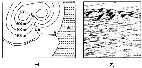 【小题2】图甲中河流堆积物从B到A处堆积的情况是( )