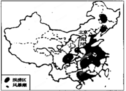 本题解析:本题考查影响我国的气象灾害。(1)直接读图归纳,我国洪涝灾害主要集中于东部地区的大河中下游地区;(2)图示风暴潮主要分布于我国南部沿海省区;(3)季风气候,由于降水变率大,故容易导致水旱灾害,我国东部地区雨带的移动,受夏季风的强弱和进退的影响,故导致降水量的不稳定,而导致水旱灾害多发。