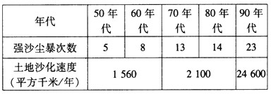 1、表中显示我国的土地沙化速度在不断加快,其原因可能是