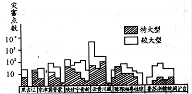 1、综合题 读下图“我国特大、较大型滑坡和泥石流分布直方图”,回答相关问题:(10分)