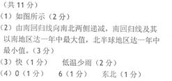 (2)此日,全球正午太阳高度的分布规律是 。(3分)