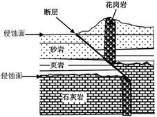 ①断层的发生?②砂岩沉积?③页岩沉积?④岩浆的侵入