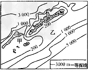 (1)图示海域为 ________海,甲处海底地形为 ________ ,乙处海底地形为 _____ 。(3分)