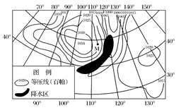 本题解析:从图中所示经纬度可以看出,图中(50°N,100°E)附近的高压中心位于亚欧大陆。M点位于北半球高压中心的东部,根据水平气压梯度力由高压指向低压,加上摩擦力、地转偏向力(向右偏)的影响,风向为西北风。选择C项。