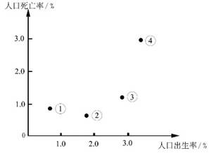 (2)四个国家中,人口出现负增长的是?(填代号),该国可能位于??洲;该国未来的经济发展中,可能面临的人口问题是?。