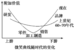 本题解析:附加值高的是研发与品牌,低的为零件、销售、最低的是加工制造。