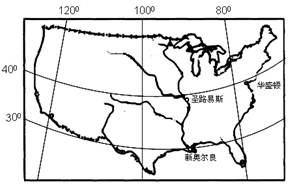 【小题2】读图可知,图中圣路易斯和新奥尔良之间大约差10个纬度,在根据纬度每差1°,距离相差110千米可知,两者距离为10*110千米,故约为1100千米。