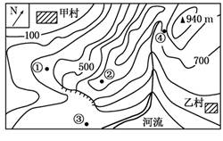 【小题2】甲所在河流从源头到甲地的最大落差大约是( )