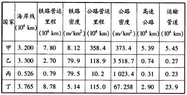 3、单选题  读中、日、韩、俄四个国家交通资料对照表,回答1—2题。