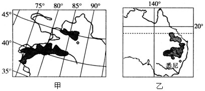 5、单选题 读我国新疆棉花分布示意图(图甲)和澳大利亚棉花分布示意图(图乙),回答1~2题。