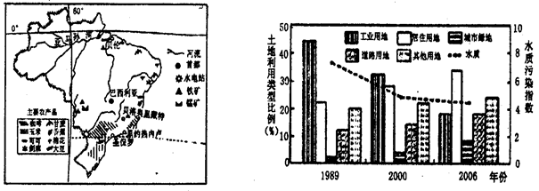 材料二:巴西利亚城土地利用类型和水质的变化趋势(右上图)。水质污染综合指数高,表示污染严重。?
