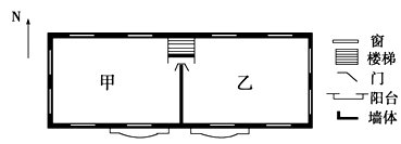 3、综合题 (9分)下面是大连(约39°N)某房地产公司开发的一梯两户式多层商品房平面示意图,读图,完成下列各题。