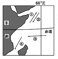4、单选题 下图中①~④箭头表示洋流的流向,读图回答下列小题。