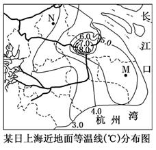 小题1:图示M两侧的等温线值为5.0、6.0,故M地的气温在5.0---6.0之间。