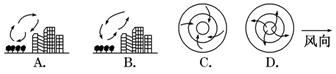 小题2:城市形成热岛效应,盛行上升气流,而郊区气温较市区低,盛行下沉气流,故B图正确。