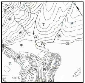 3、单选题 下图是亚热带欧亚大陆东部某地等高线分布图,读图回答1—3题。