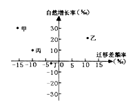 小题1:图中丙点表示的人口变动状况正确的是(?)