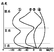 2、单选题 下图是大气温度的垂直分布示意图,完成1—4题。