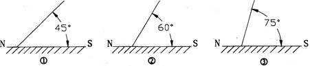 1.夏至日正午太阳高度是从北回归线向南北两侧递减,图中三地正午时太阳均位于南方,说明三地均在北半球北回归线以北,且太阳高度从③→②→①逐渐减小,说明③→②→①纬度变高。