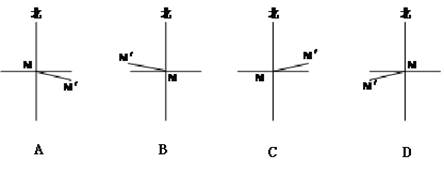 2、单选题 肩负着“落月”重任的嫦娥三号月球探测器于2013年12月2日凌晨1时30分在西昌卫星发射中心由“长征三号乙”运载火箭发射。据此回答该嫦娥三号发射升空时,能正确表示位于美国旧金山(37°48′N,122°25′W)的旗杆竿影(图中MM′所示)朝向的是