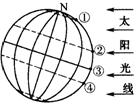 图日期所示的①、②、③、④四地中,白昼时间最长的: