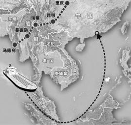 3、单选题 2013年中国原油进口量将达到2.85亿吨左右,中国原油进口依存度突破60%,5月30日,中缅油气管道全线贯通。读中缅油气管道(昆明—马德岛)路线图,回答小题。