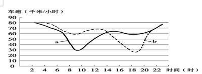 小题1:图中实线在上午车速慢,应表示从城郊向中心城区方向的车速变化,而虚线则表示反方向车速情况。