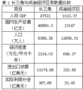 (3)根据材料2分析,成渝经济区经济与长三角相比有何特点。