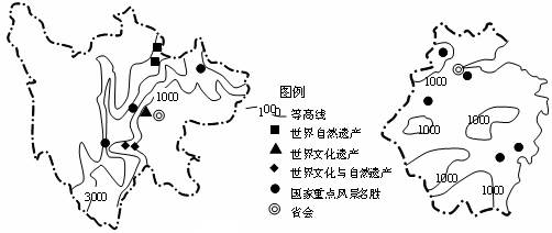 小题1:四川省旅游资源分布图中的两个世界自然遗产地,夏秋旅客人数明显多于冬春,其主要影响因素是