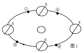 (1)画出③位置时昼半球、夜半球的状况(用阴影部分表示夜半球)