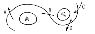 2、单选题  下图为北半球近地面,则表示风向正确的是: