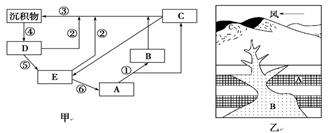 (1)根据甲图中箭头的方向,将各数字所代表的地质作用填入空格内: