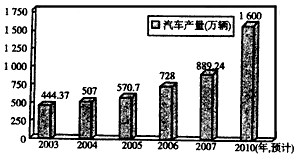 3、多选题 ? 近几年我国汽车销售量保持较高的增长势头,欧美和日本等世界主要汽车市场,或出现姜缩、或停滞不前。读2003年到2010(预计)年我国汽车生产量增长情况图,回答1—2题。