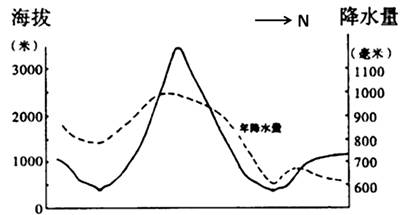 2、单选题 下图为 “某山地海拔高度与降水关系示意图”。读图,完成下题。