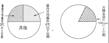 本题解析:根据图示获取信息,气温百分比图显示,最冷月平均气温在 0℃以下的月份占全年的 1/4,月平均气温在 23℃以上的月份占全年的 1/4,月降水量在 100 mm以上的月份占全年的 1/6,即两个月,由此可以判断该地地处温带,四季分明,降水集中,为温带季风气候。