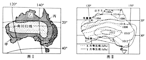4、综合题 (14分)读澳大利亚气候分布图(图Ⅰ)和等压线图(图Ⅱ),回答下列问题。