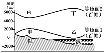 2、单选题 下图为某季节我国东部沿海某区域近地面和高空等压面示意图。读图,回答以下问题: