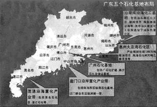 材料二:广东省政府发布有关规划,粤未来五年建五大石化基地,预计2010年广东炼油能力将达每年6300万吨,加速构建广东具有国际竞争力的石化工业体系。