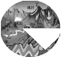 D.丁为冰川搬运和堆积作用形成的山峰