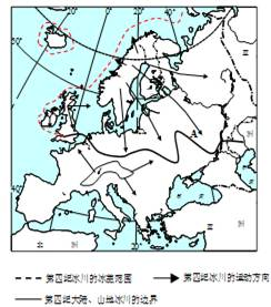 1.与欧洲大陆西侧第四纪冰川冰盖距陆地距离南北差异关联度最大的是2.第四纪冰期时,A地所受的外力作用主要是