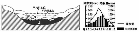 1.甲、乙、丙为河流沉积层,其沉积物分别是2.该河段的主要补给类型是