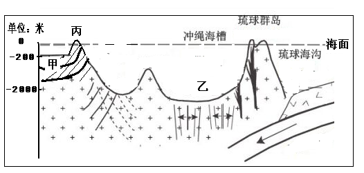 1.甲地层中有丰富煤、天然气资源,则该地层往往2.乙处3.关于该区域的叙述,错误的是4.丙岛