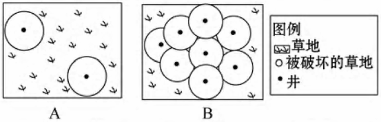 1.图中圆内裸地表示沙层裸露或固定沙丘活化,导致这种现象的原因是2.A、B两图的荒漠化分别表现为