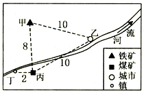 4、单选题 假设每生产1吨钢要消耗1.5吨煤炭和2吨铁矿石,每吨煤炭、铁矿石和钢材的运费相同,乙地为钢铁消费市场,下图中数值表示两地距离(单位:千米)。读图回答题。