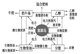 小题2:读图,可以找到该一体化牛奶—生物炼油厂获取的产品有牛奶、乙醇、生物柴油、微生物泥饼、混合肥料等,所以D对。电力、甘油只在公司内部使用,属于生产环节,不作为产品进入市场,所以A、B、C错。