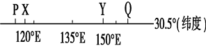1、单选题 下图为世界地图上的一段纬线,P点以西为海洋,Q点以东为海洋,PQ为陆地。读图完成题。